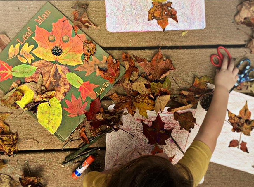 “Leaf Man”, a beloved children’s book written by Lois Ehlert, is one of our favorite seasonal books to read each year! You may find this book in many forest school classrooms or nature-loving homes. This year, we decided to make our very own leaf people after reading the story!