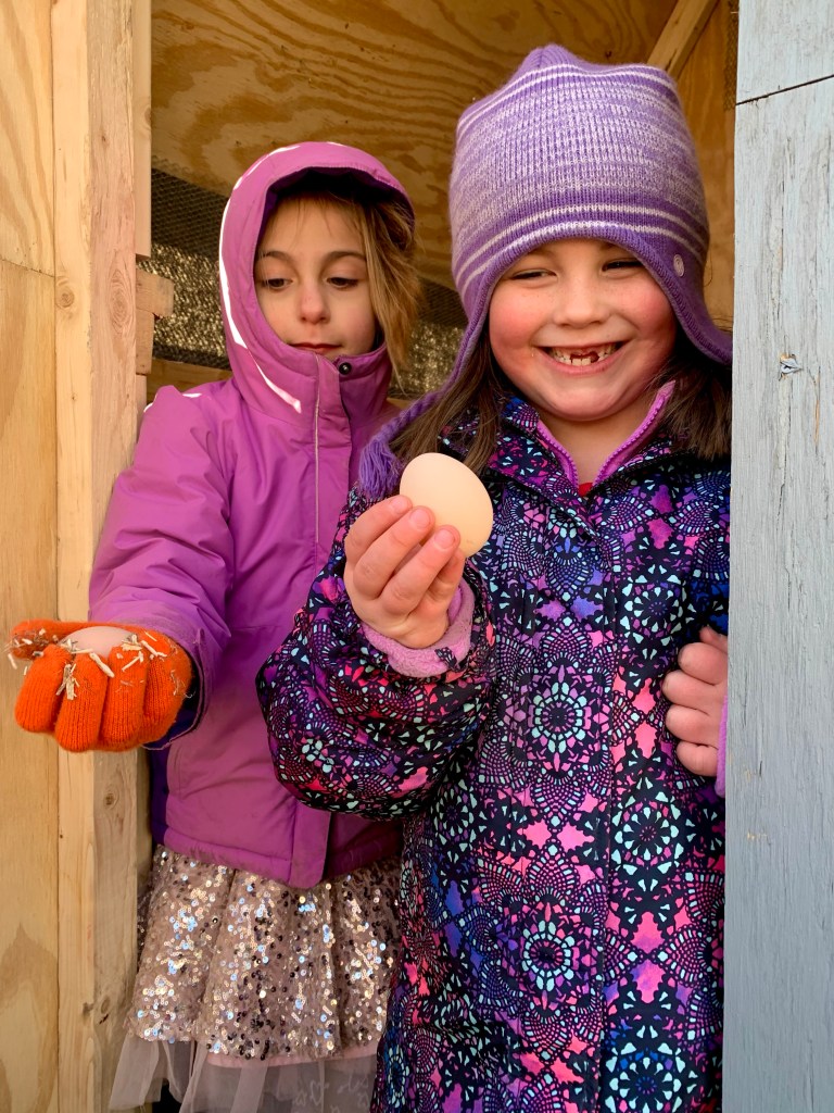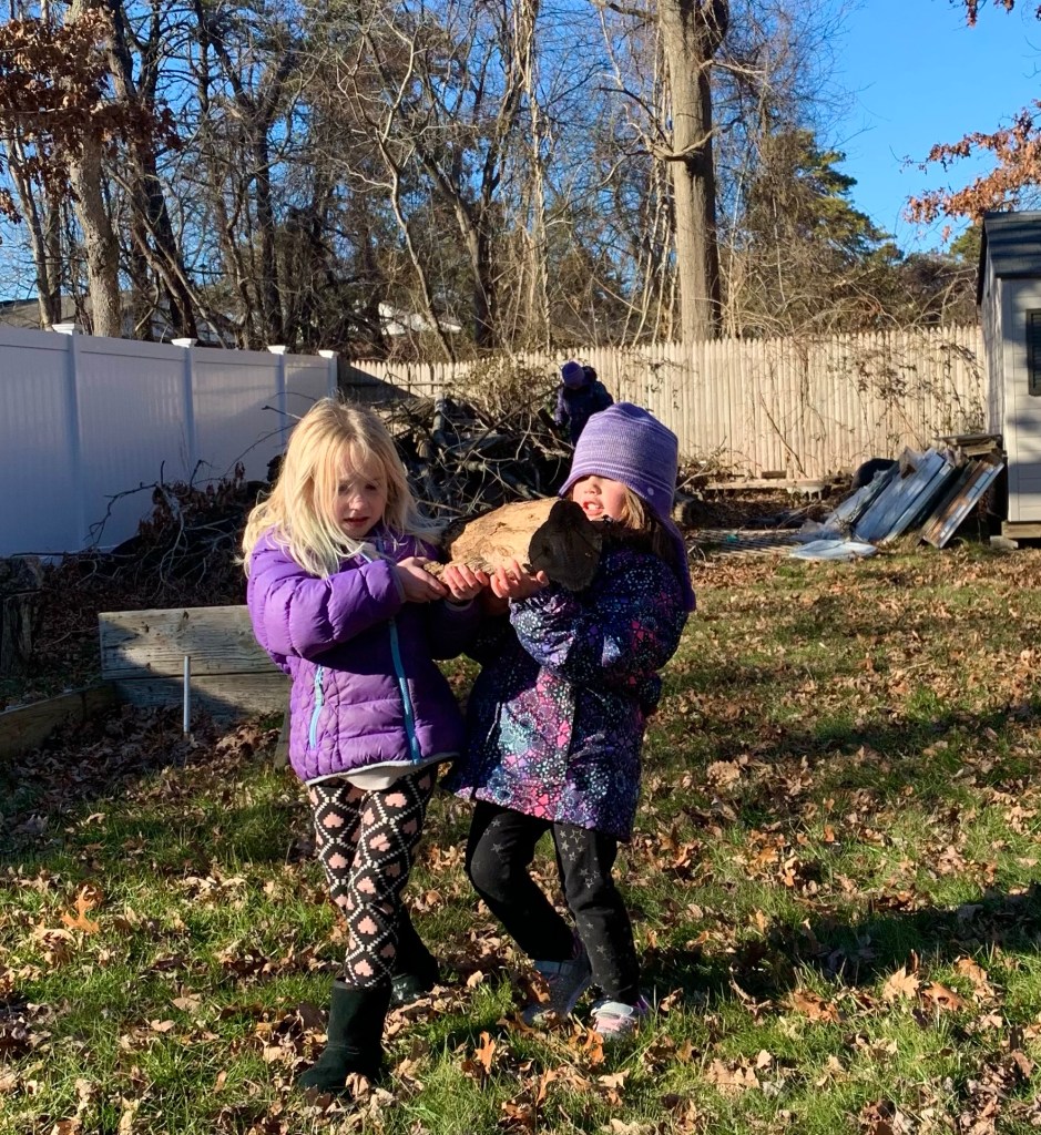 Finally, we celebrated with a full wolf moon play date with our friends! We began our festivities by lighting our lanterns and of course some unstructured free play. A little later, we collected kindling for our blazing bonfire and ate some sweet moon cookies! 🍪 We spent the rest of the sleepy winter afternoon playing, catching chickens, collecting eggs and watching the sun go to sleep.